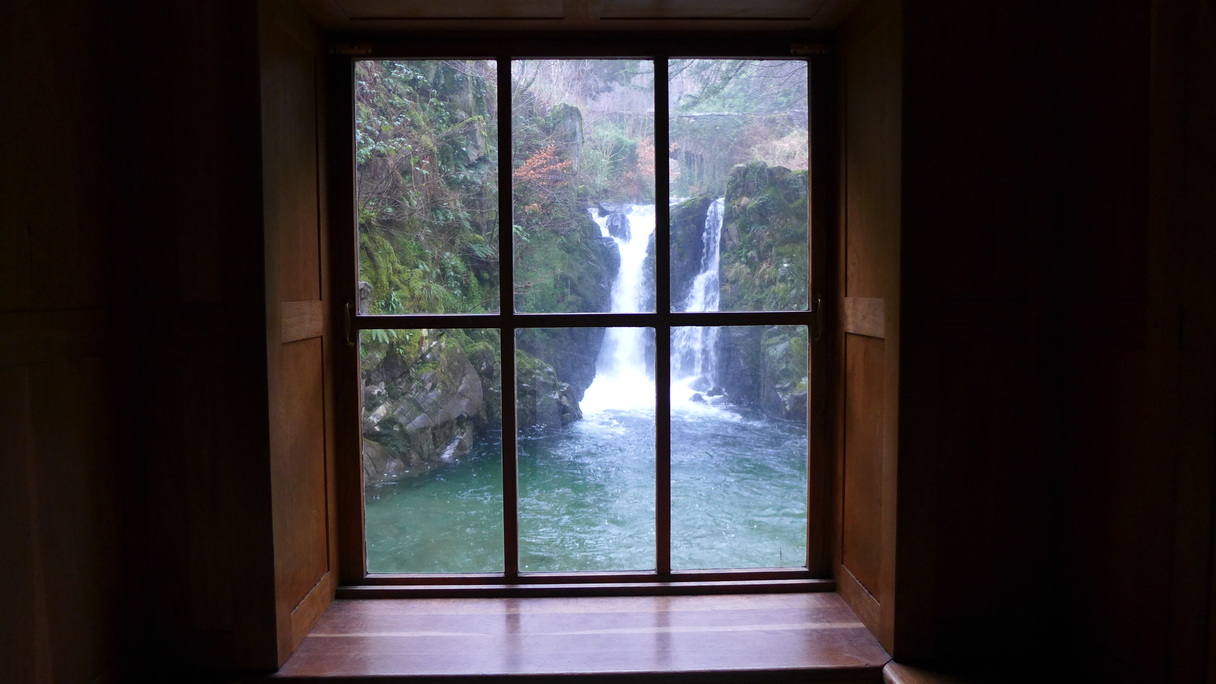Rydal Hall, at the top of Lake Windermere, just north of Ambleside, has stunning views over Ullswater, as well as beautiful gardens and woods to explore, plus the famous waterfall that Wordsworth wrote about – a water fall that is best seen through the window of the grot, a waterfall that is so strangely beautiful that it seems hyperreal, almost fake, as if some small artificial corner of a Disney theme park.
