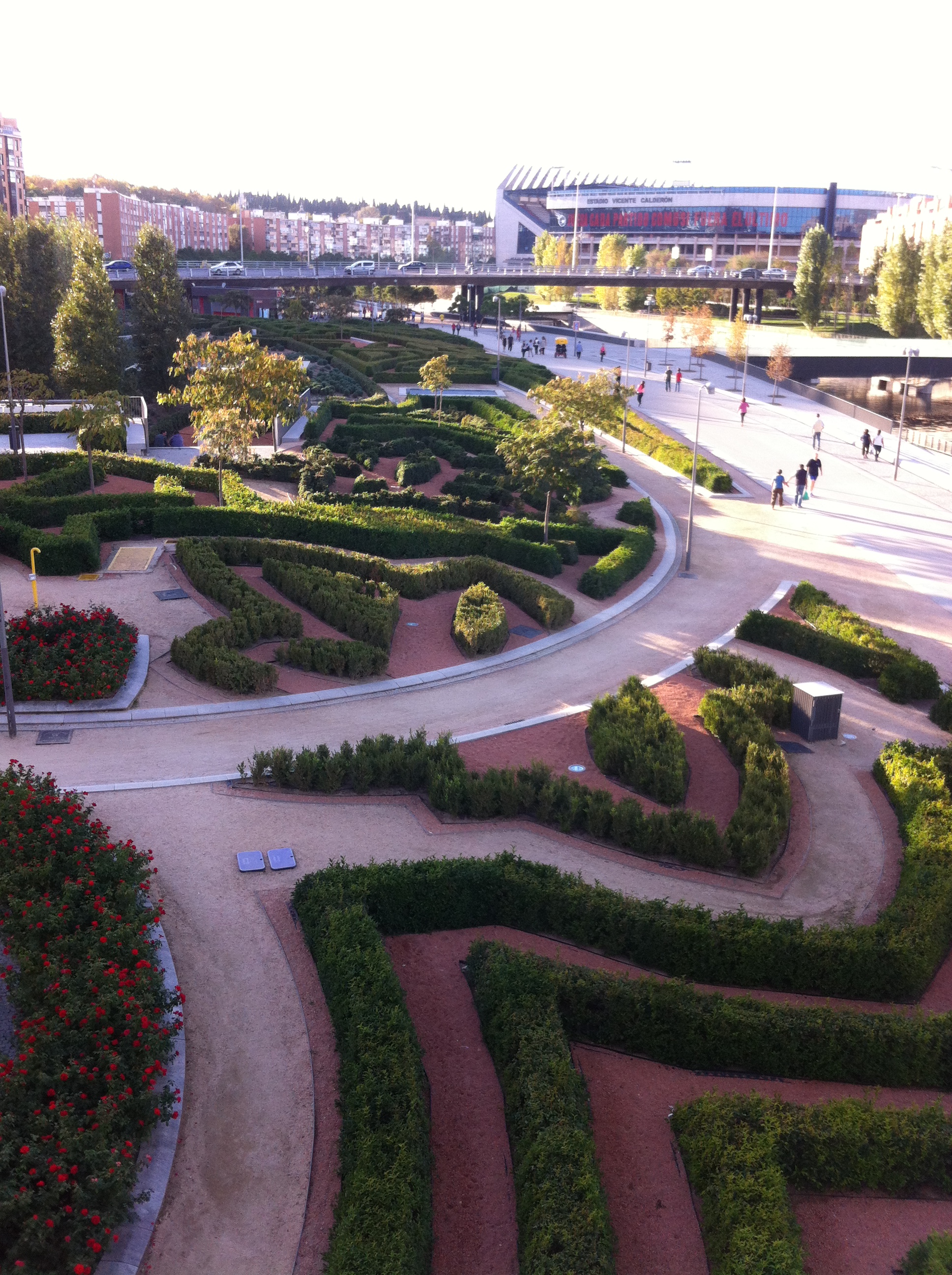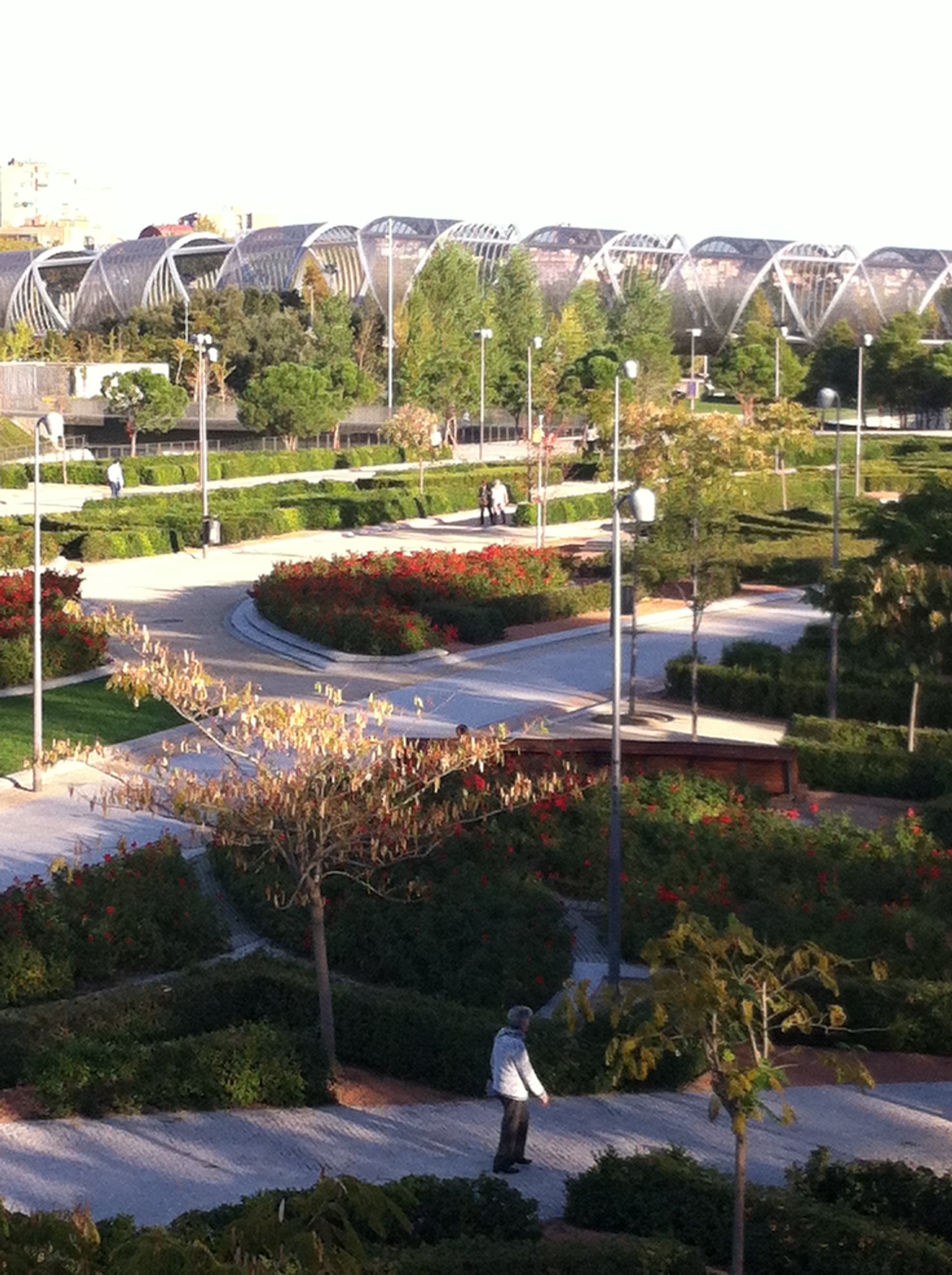 A brilliant few days travelling by the amazing Spanish AVE high-speed train to Madrid and back, with a chance to catch up with friends. It’s 15 years since I lived in Madrid, so it was amazing to meet up with my two flatmates from back then, as well as to literally bump into people I once knew in the street. Madrid seems changed – much smarter, but also more commercial and busier. And more vibrant than Paris, despite the supposed recession, though only seeing the centre of a city is of course deceptive. The creation of a massive new 7-kilometre river park and a huge new art complex in an old abattoir ‘El Matadero‘ in the southern suburbs was really impressive. Madrid never made much of its river – the Manzanares – before, but now I think I’d go there to walk before the often-crowded Retiro.